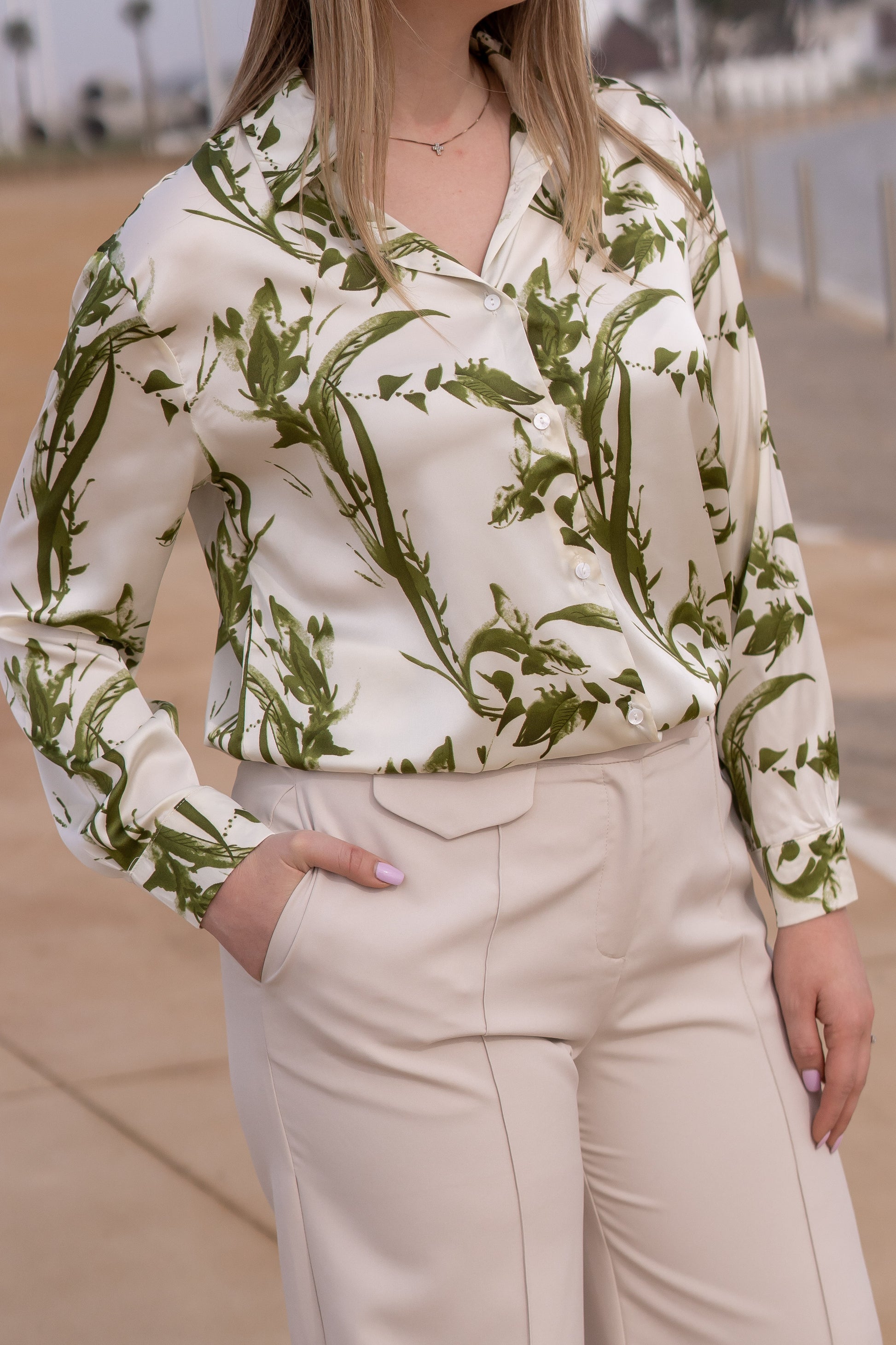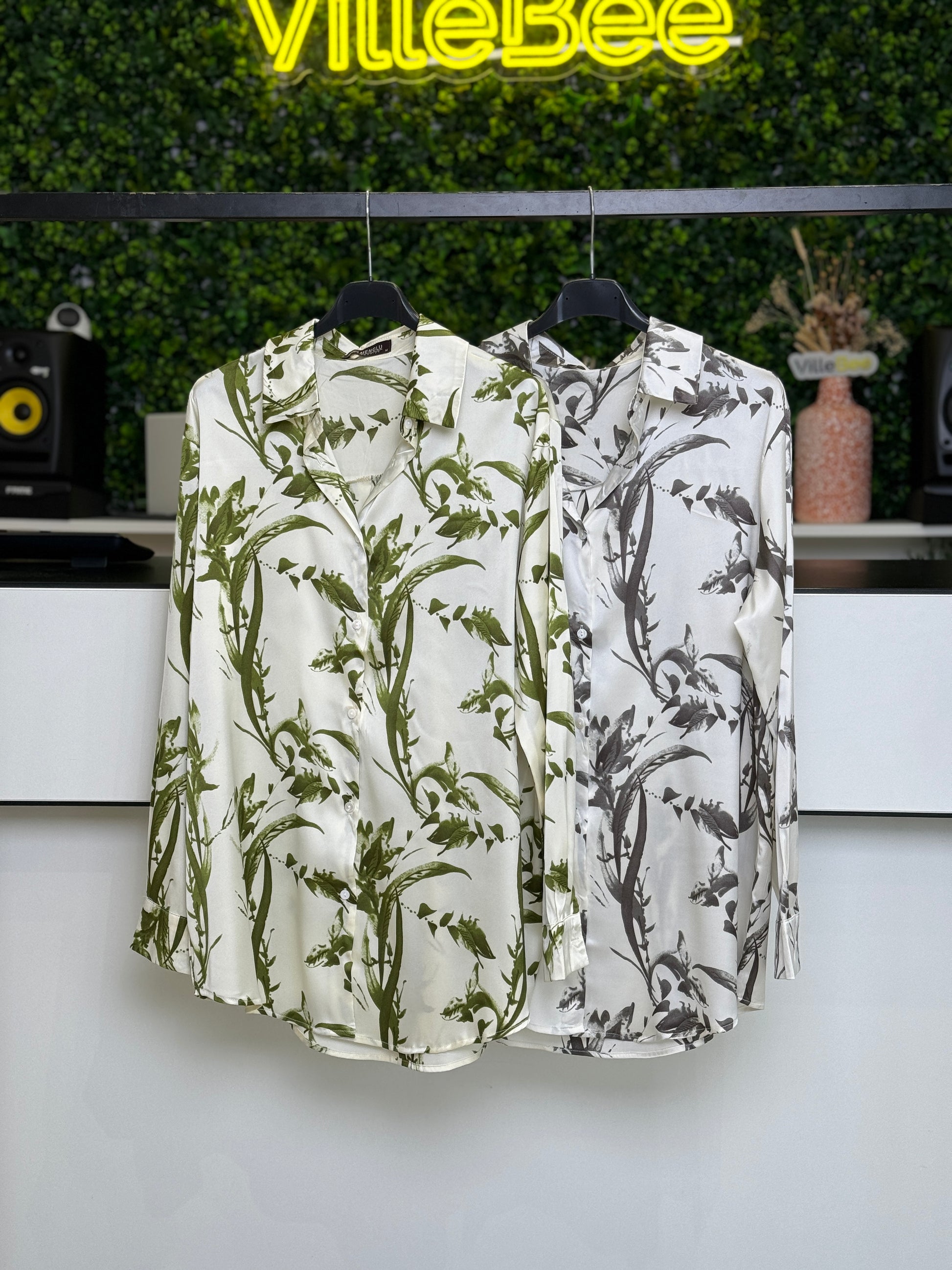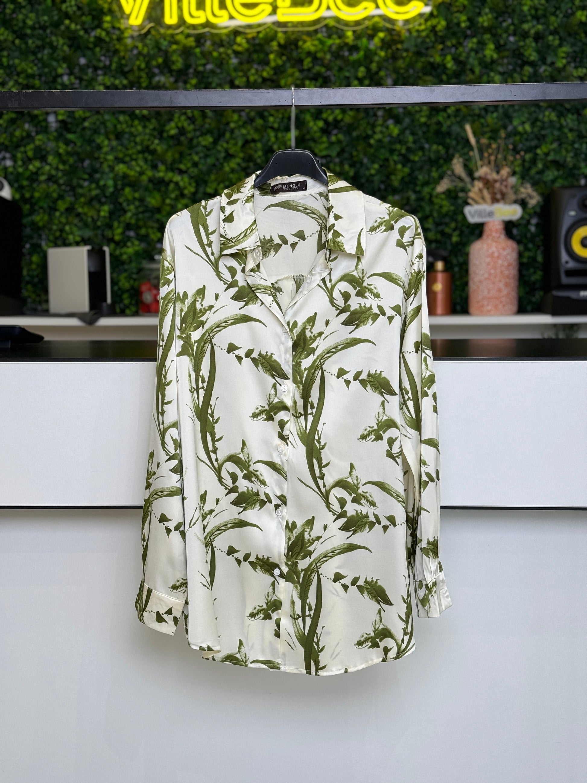Camisa Setim Folhas