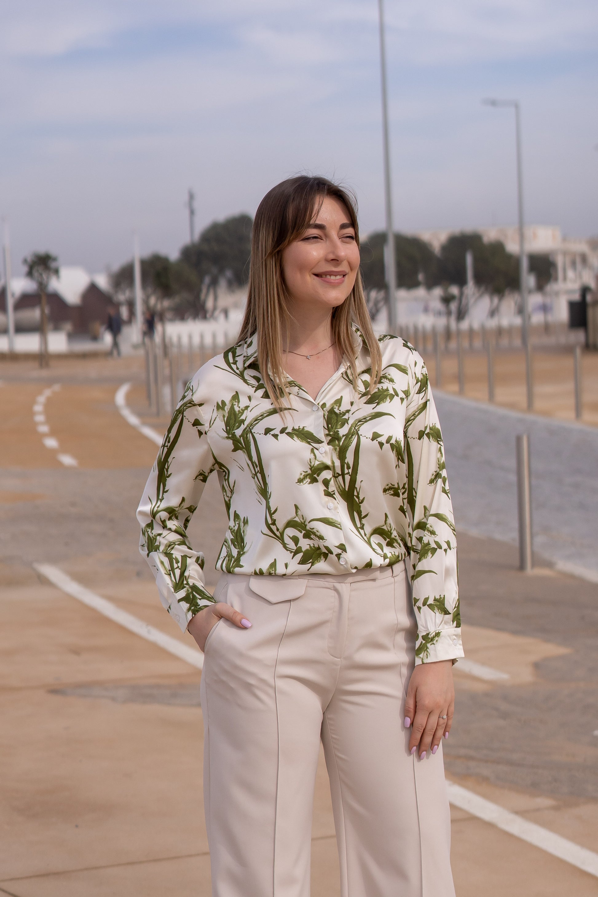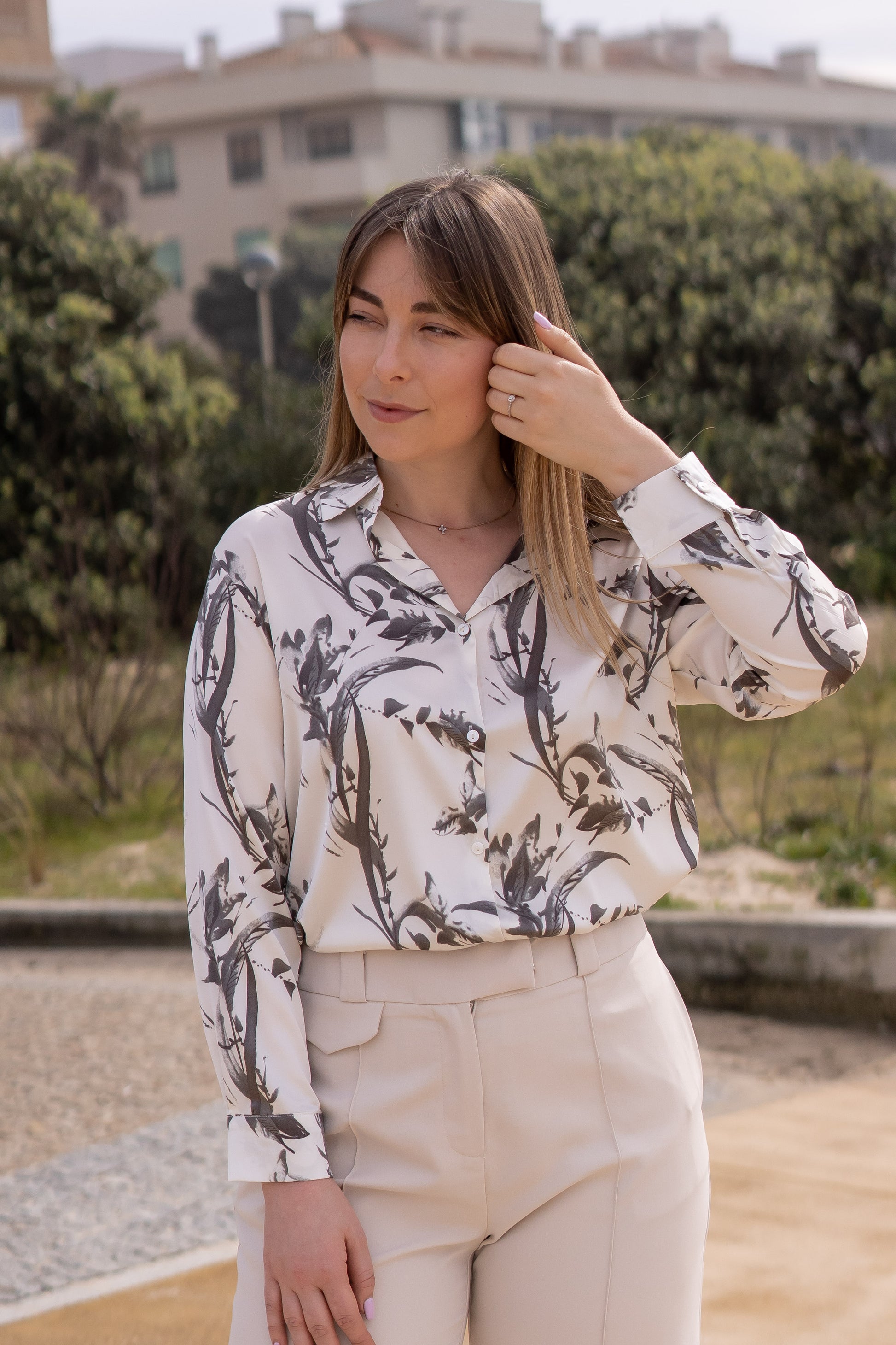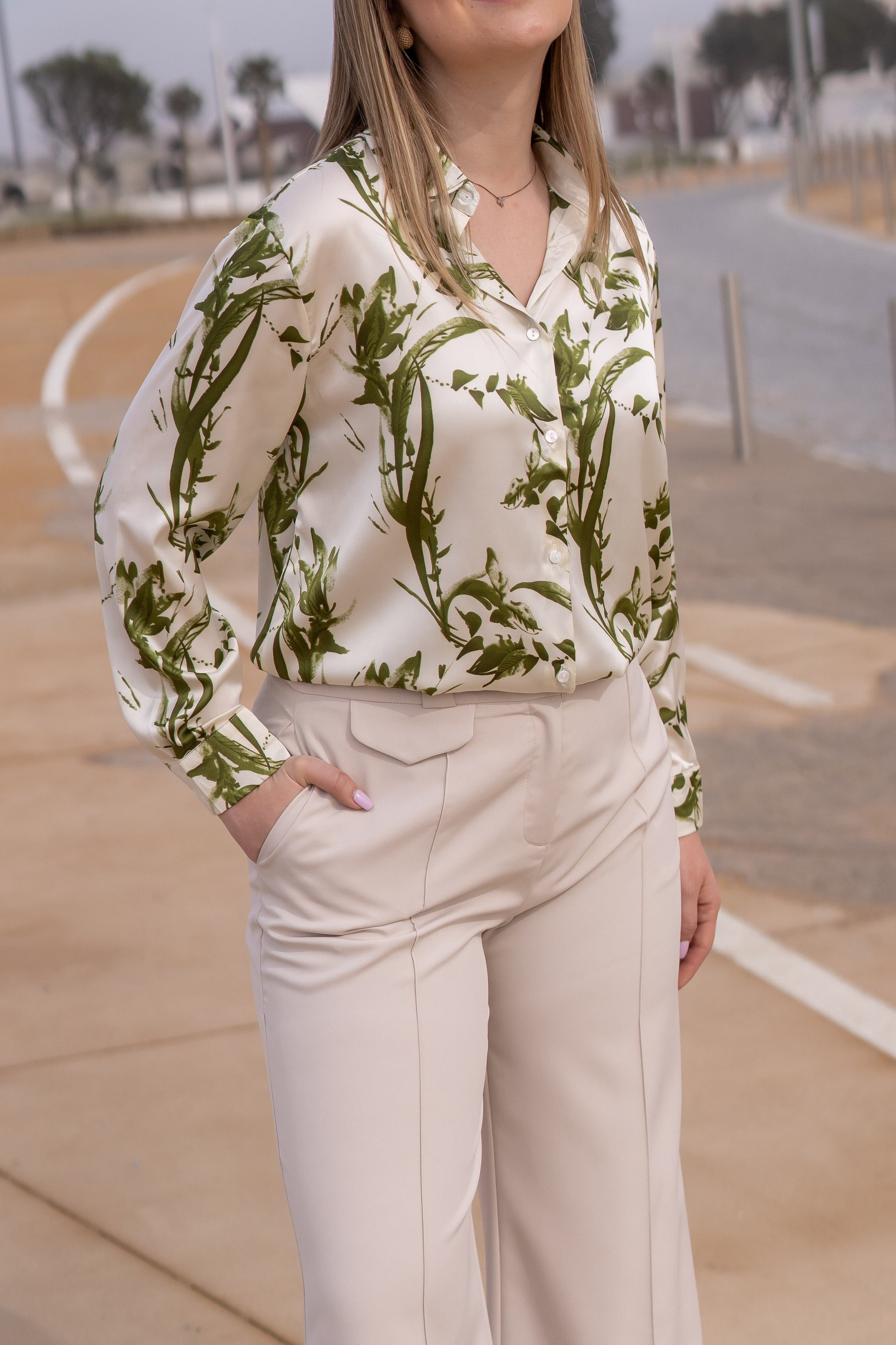 Camisa Setim Folhas